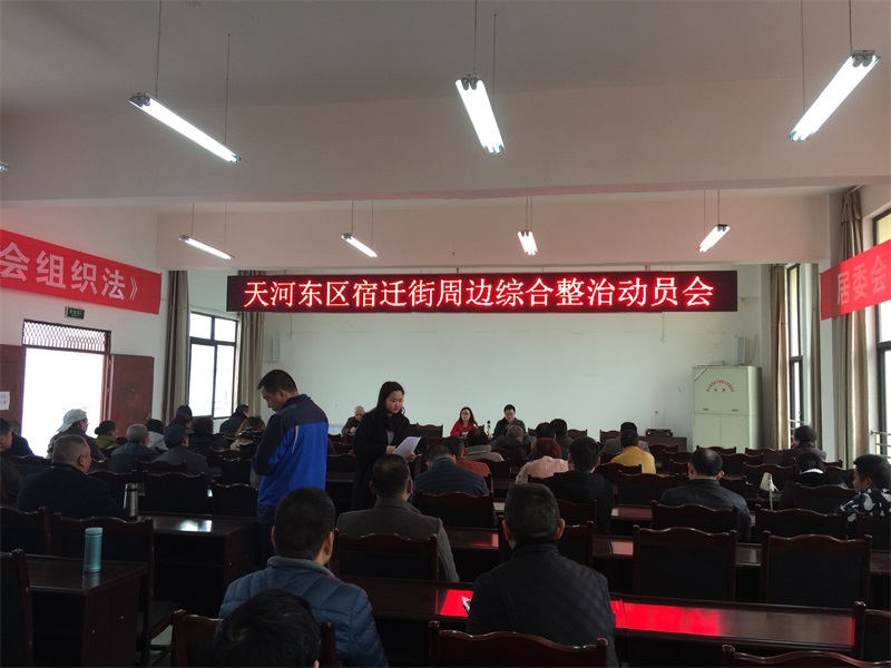 2017年3月6日,市政府牽頭,由市規劃局、城管局、東北鎮、劍南鎮等單位參與的整治小組召集天河東區宿遷街周邊以街為市、占道經(jīng)營(yíng)及違規搭建的商戶(hù)召開(kāi)了集中整治動(dòng)員會(huì )。