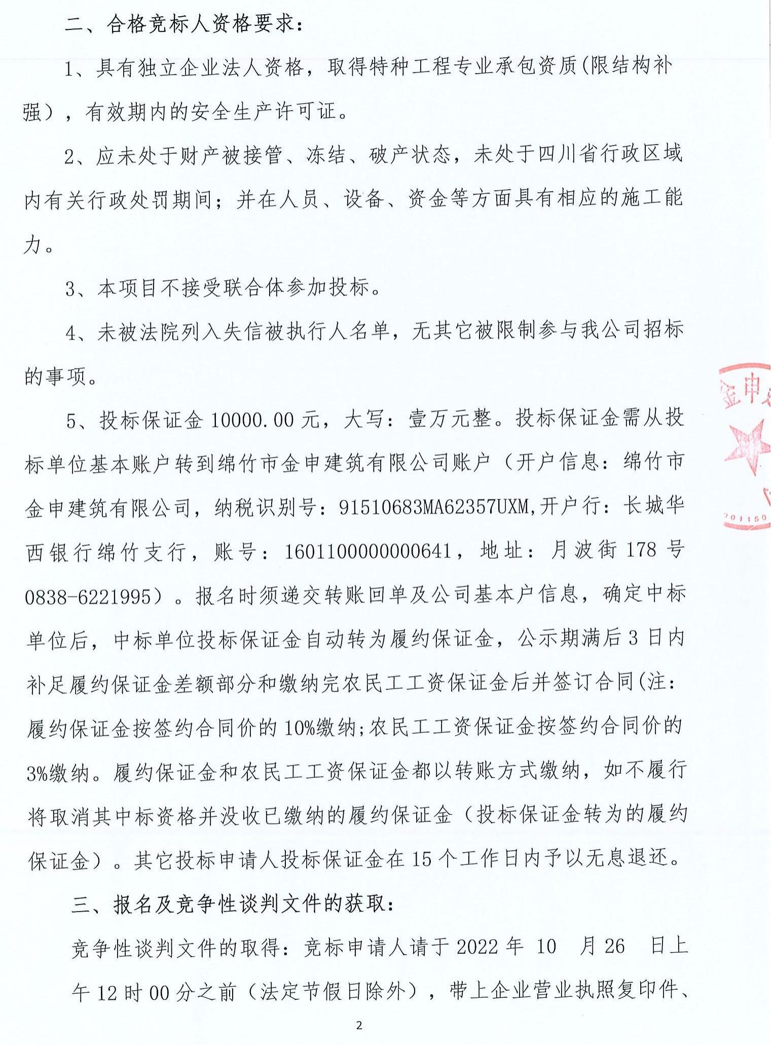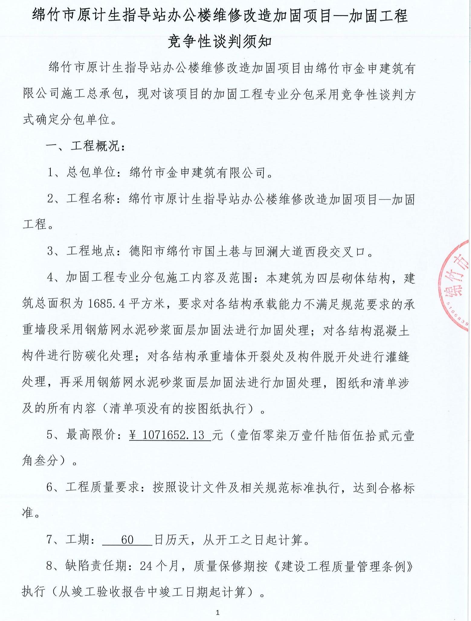 綿竹原計生指導站辦公樓維修改造加固項目競爭性談判須知