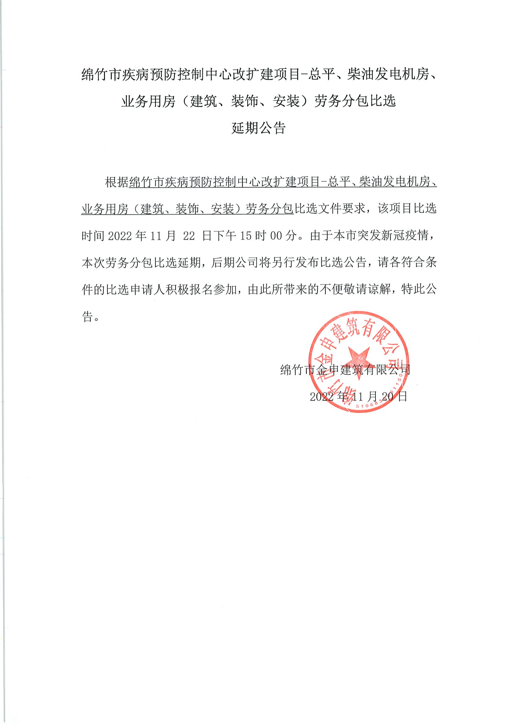 綿竹市疾病預防控制中心改擴建項目勞務(wù)分包比選延期公告