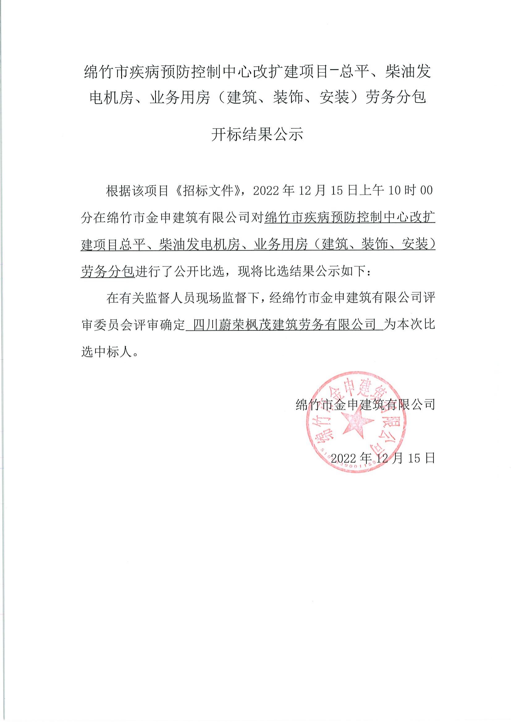 綿竹市疾病預防控制中心改擴建項目勞務(wù)比選結果公示