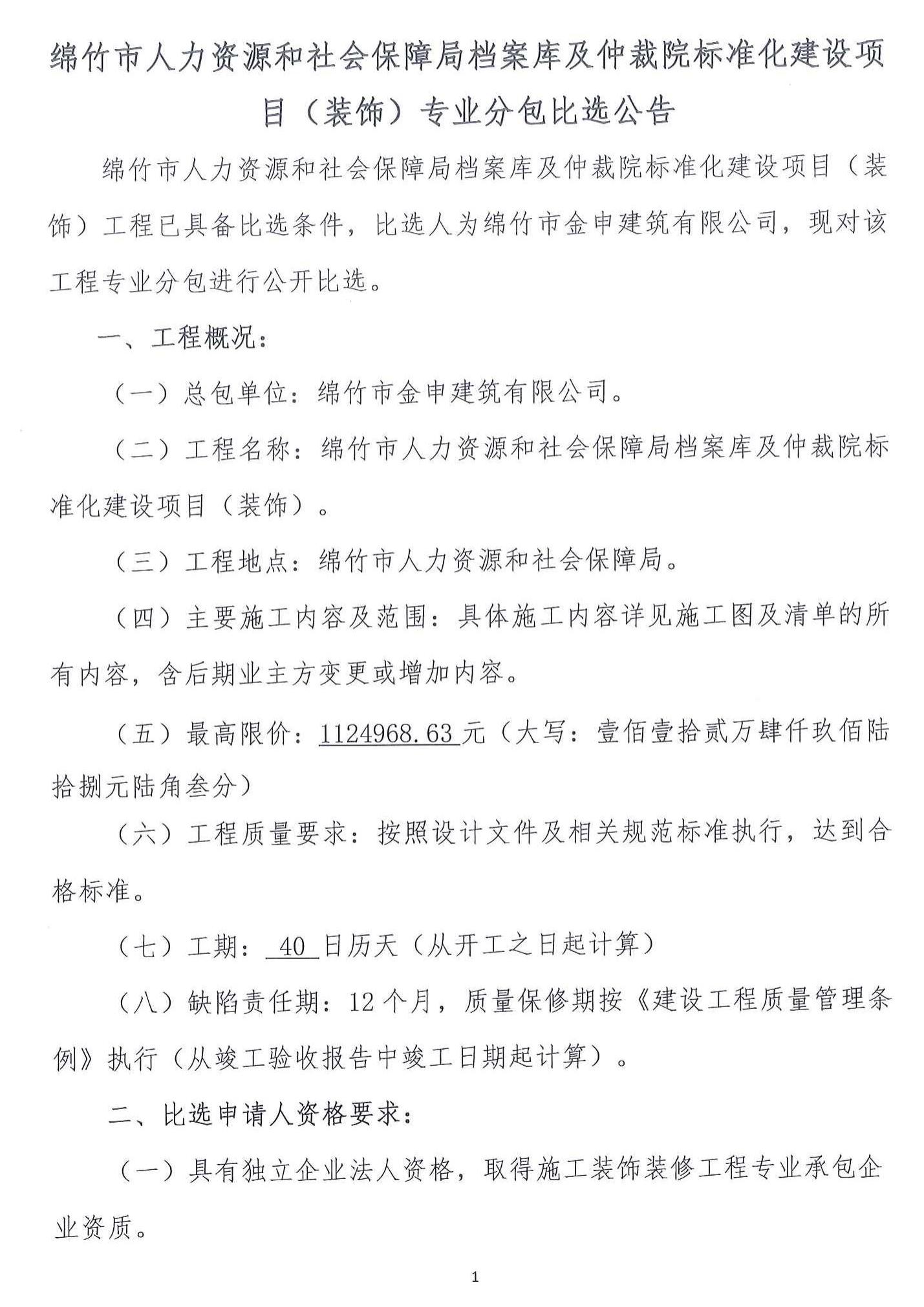 綿竹人社局檔案庫及仲裁院建設項目(裝飾)分包比選公告