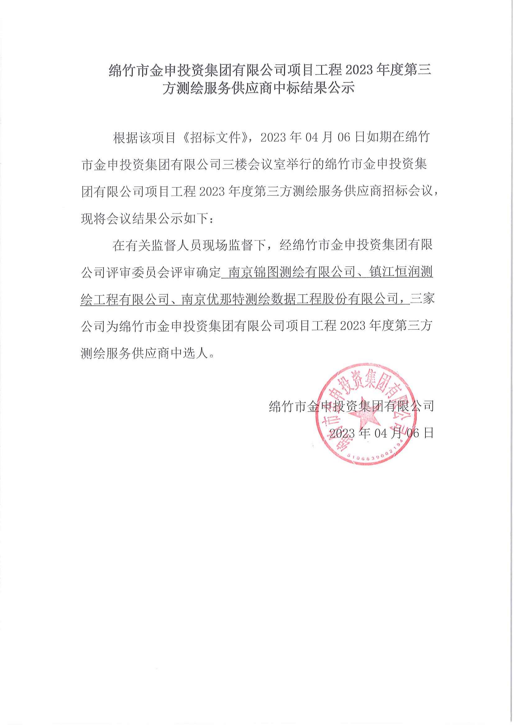金申集團公司項目工程2023年第三方測繪服務(wù)供應商結果公示