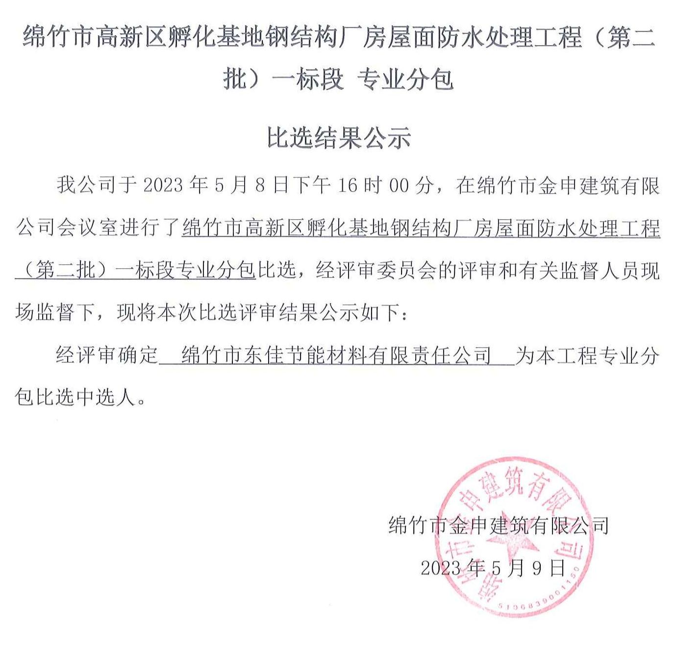 高新區孵化園防水處理工程(第二批)分包比選結果公示