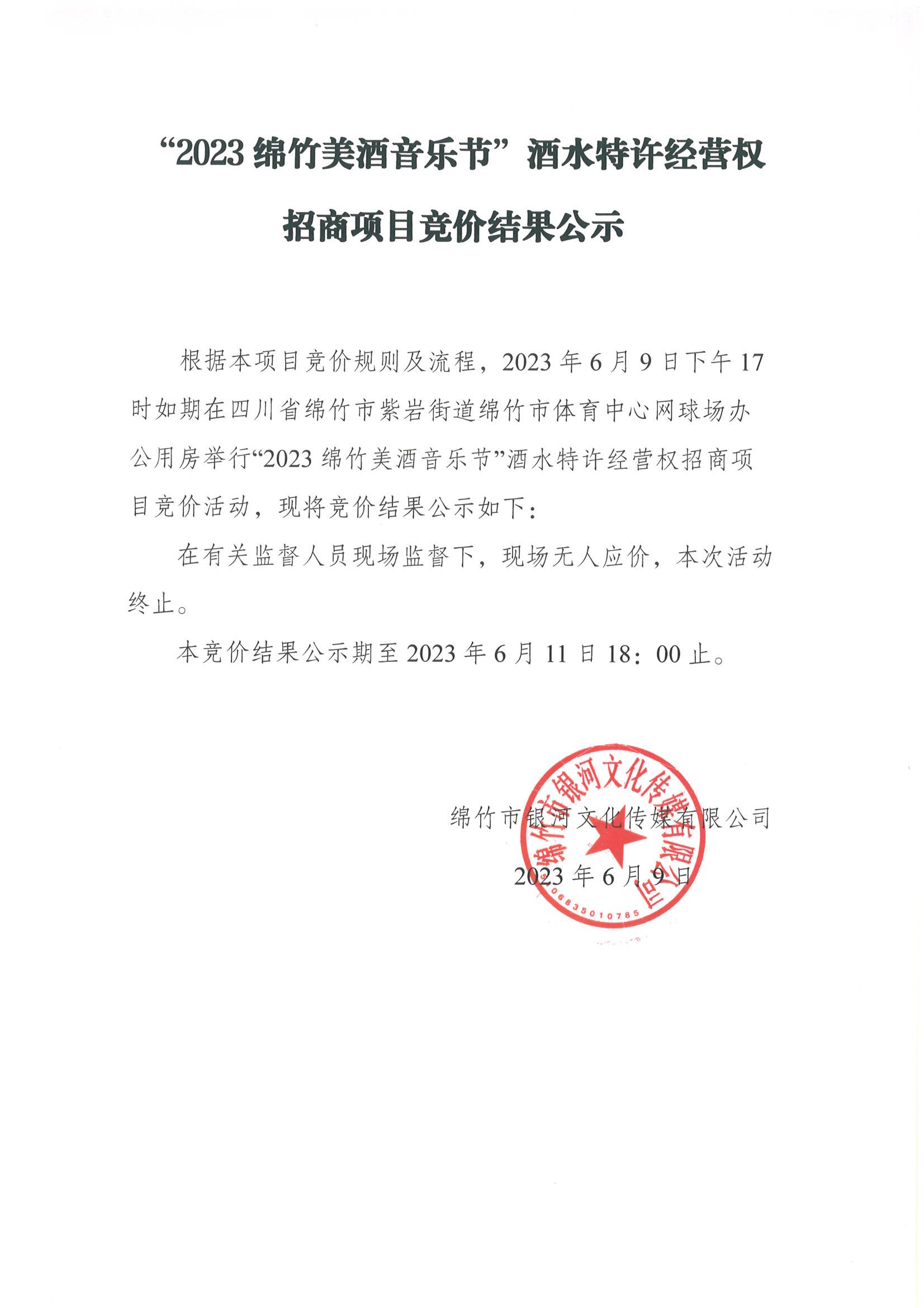 “2023綿竹美酒音樂(lè )節”酒水特許經(jīng)營(yíng)權供應商招商結果公示