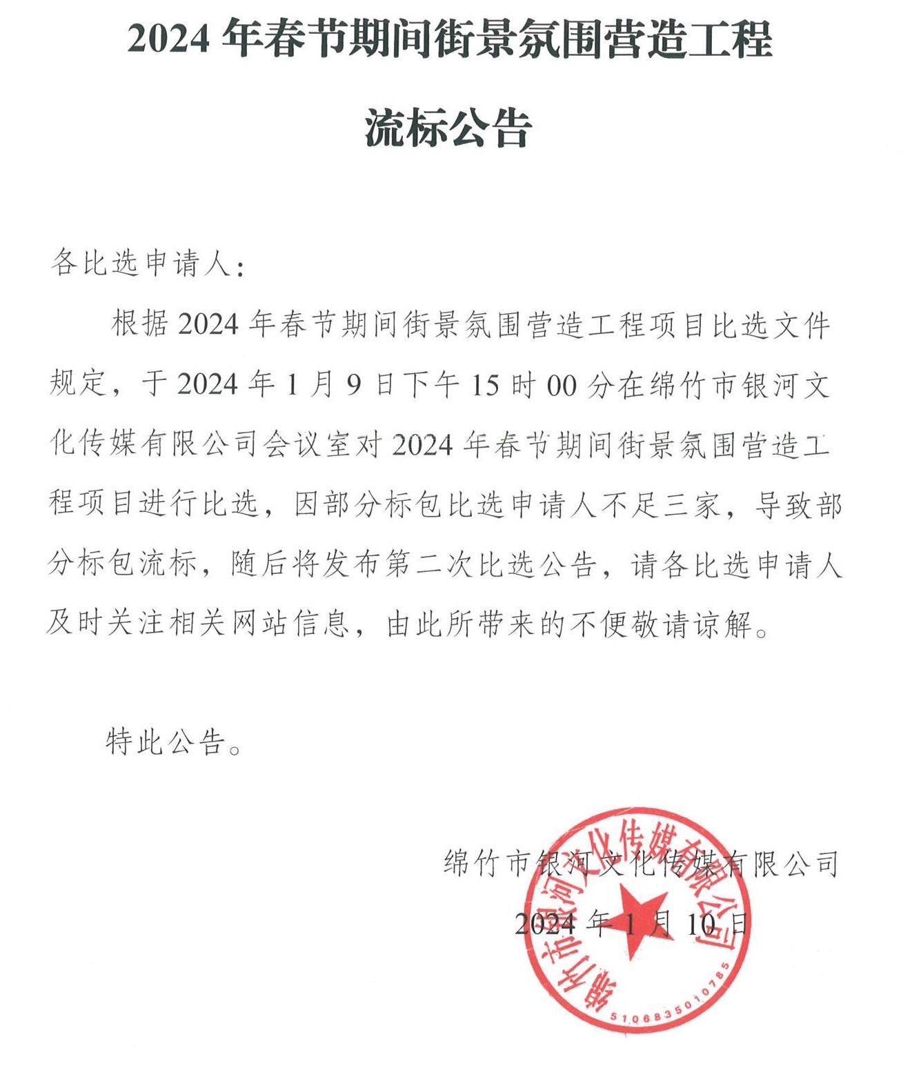 春節期間街景氛圍營(yíng)造工程項目部分標包流標公告