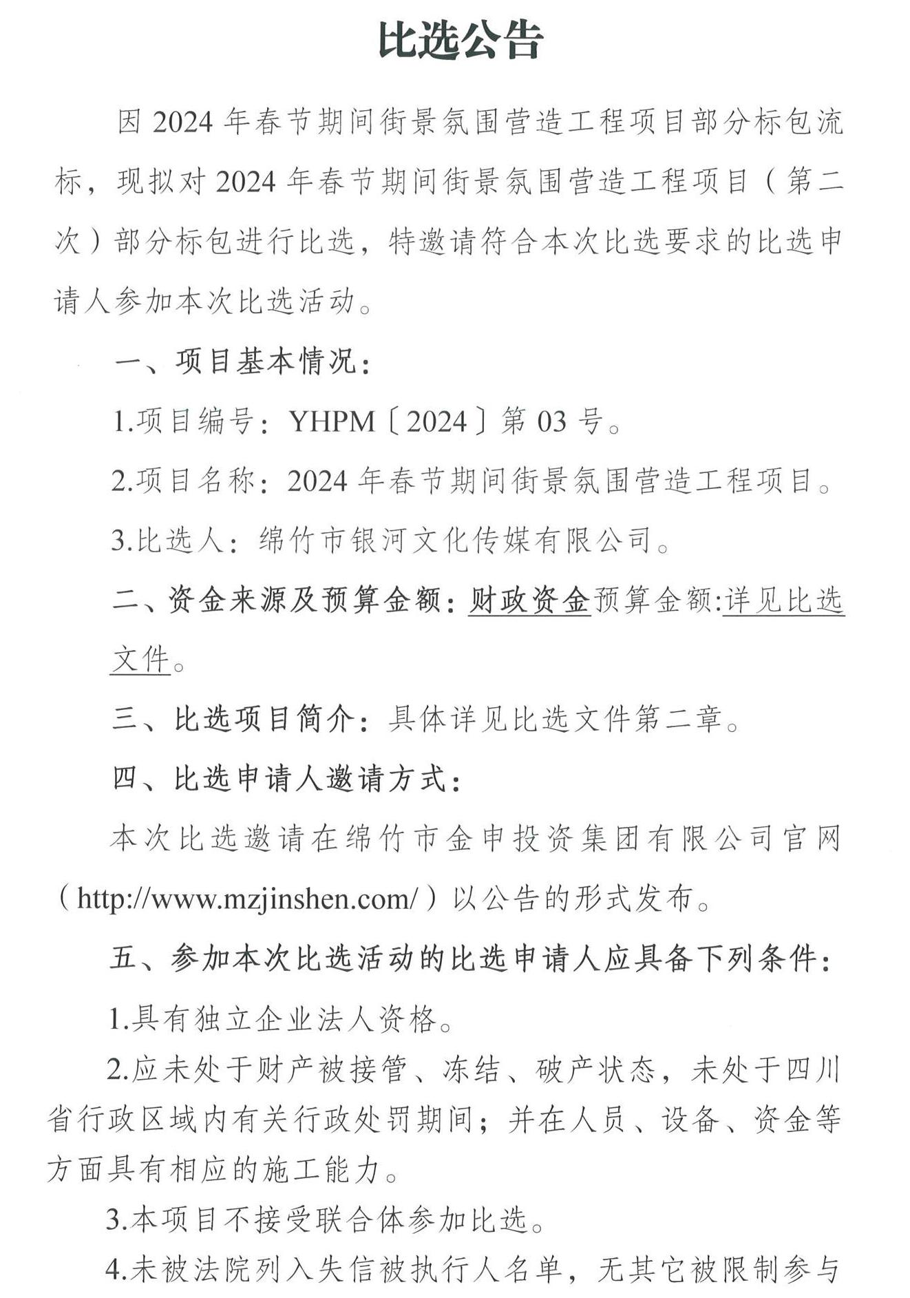 春節期間街景氛圍營(yíng)造工程(第二次)部分標包比選公告