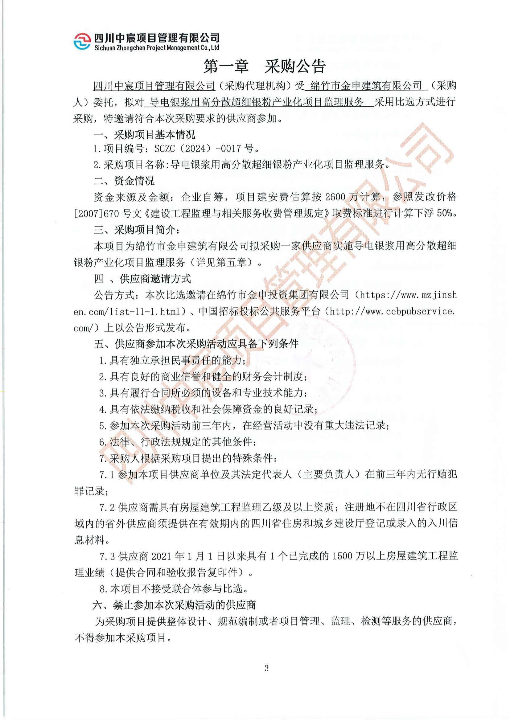 導電銀漿用高分散超細銀粉產(chǎn)業(yè)化項目監理服務(wù)比選公告