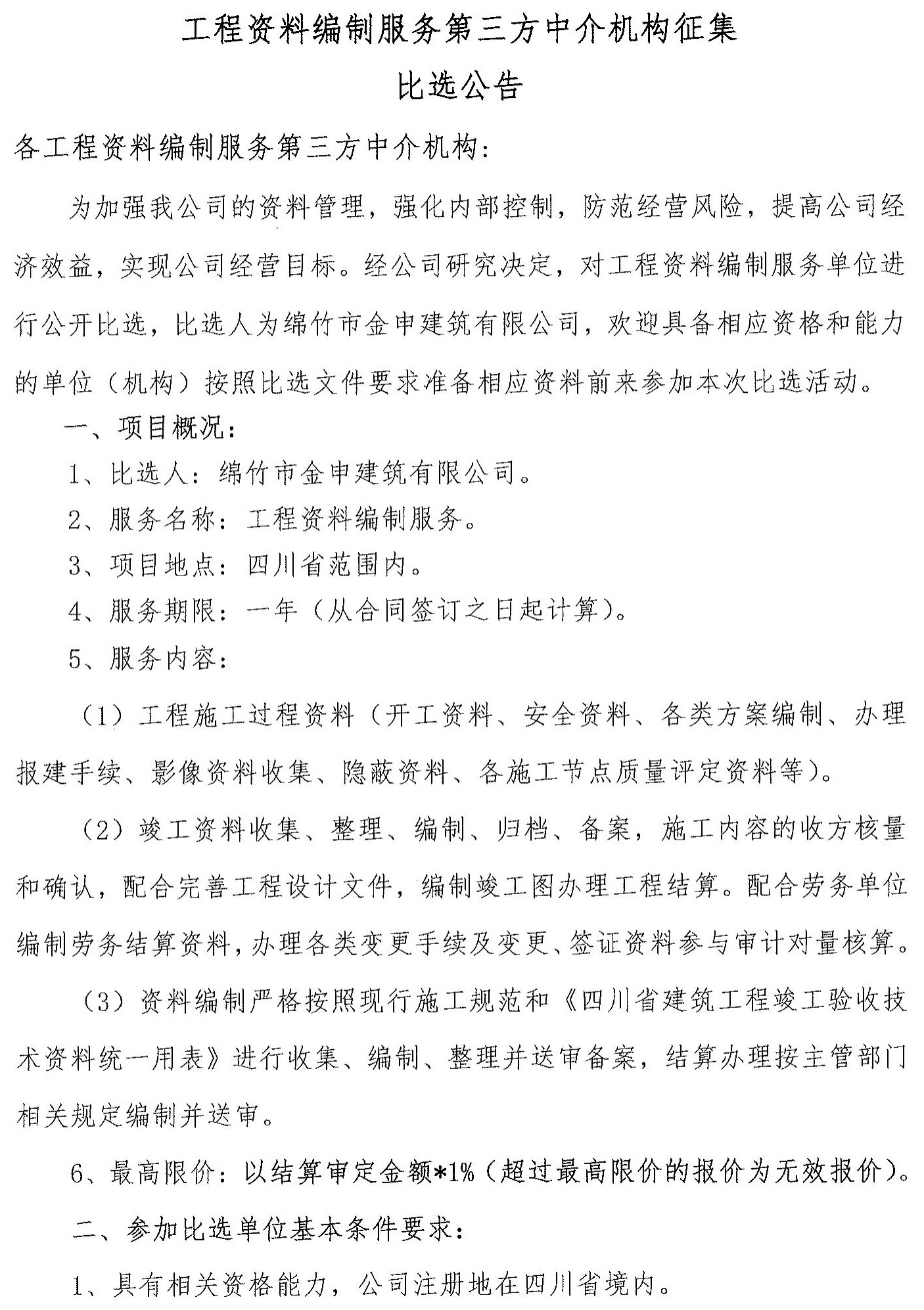 工程資料編制服務(wù)第三方中介機構征集比選公告