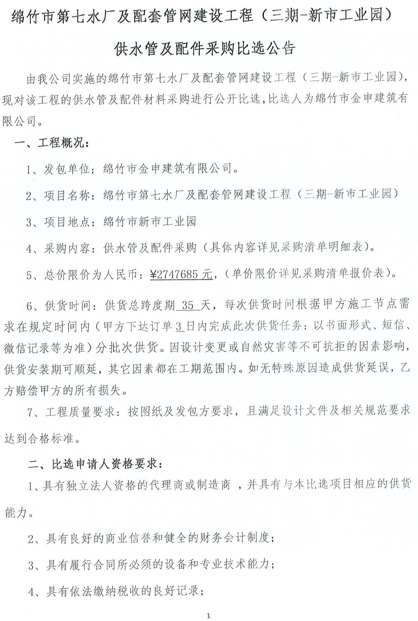 第七水廠(chǎng)及配套管網(wǎng)建設(三期新市工業(yè)園)采購比選公告