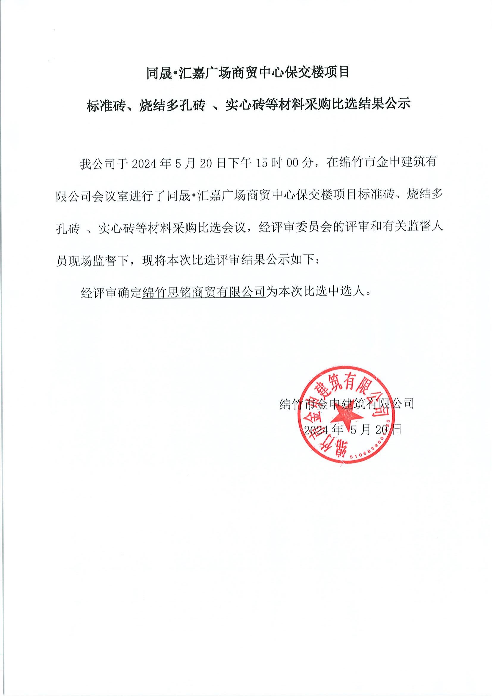 保交樓項目標準磚、燒結多孔磚、實(shí)心磚材料采購比選公告