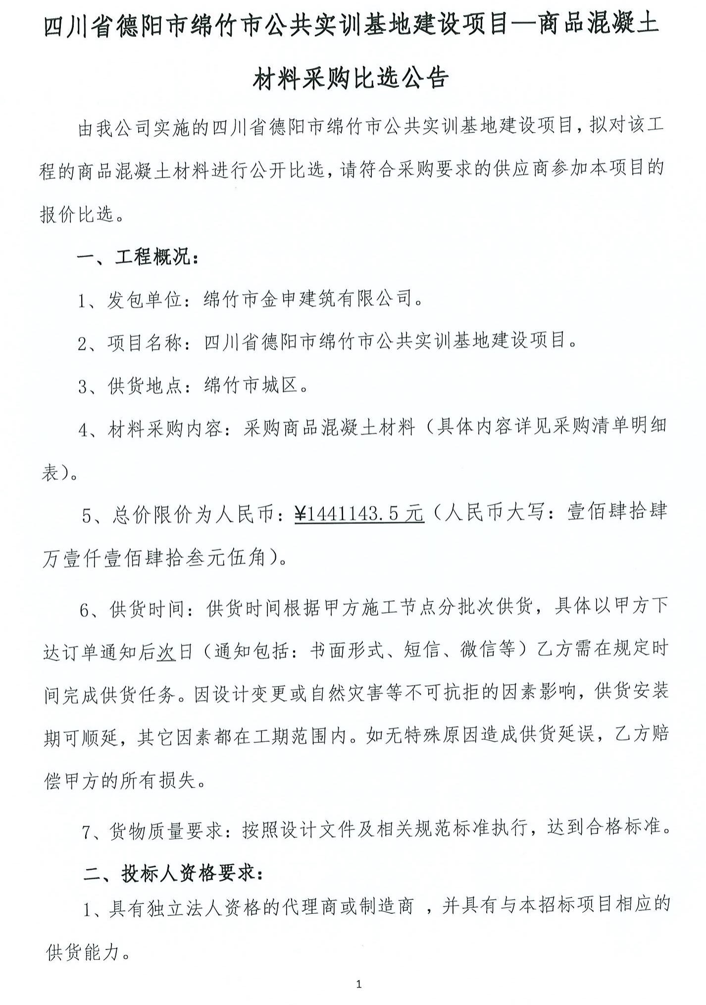 綿竹市公共實(shí)訓基地建設項目—商品混凝土比選公告