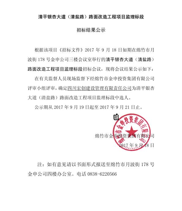 清平銀杏大道路面改造工程項目監理標段招標結果公示