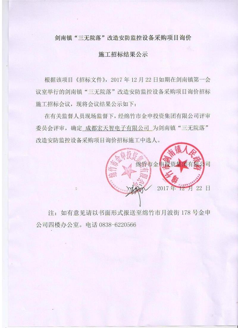 劍南鎮“三無(wú)院落”改造安防監控設備采購招標結果公示