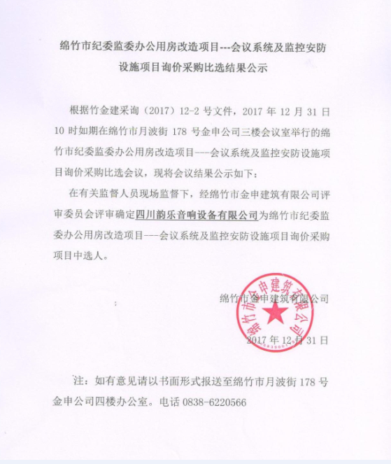市紀委監委辦公樓---會(huì )議系統及監控安防項目詢(xún)價(jià)結果公示