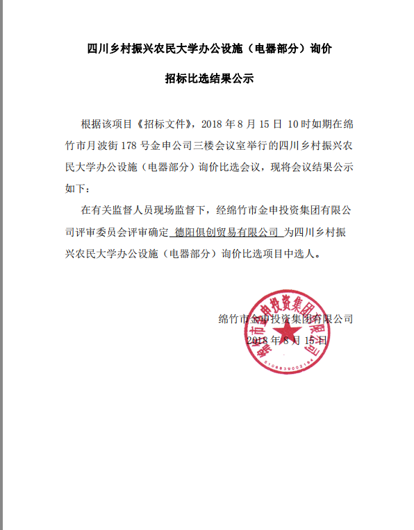 農民大學(xué)(電器部分)招標比選結果公示