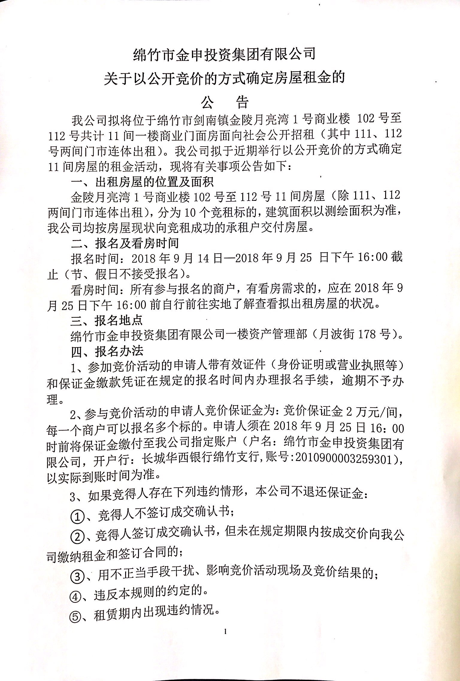 月亮灣1號商業(yè)樓112號公開(kāi)競租公告