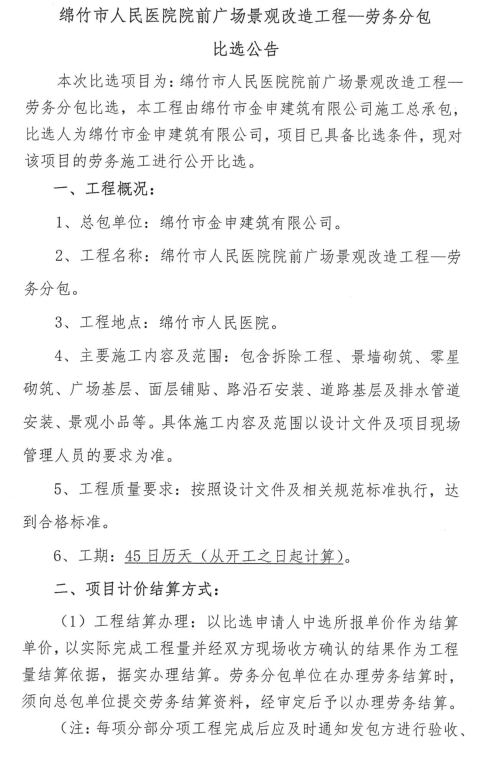 關(guān)于綿竹市人民醫院改造工程勞務(wù)分包的比選公告