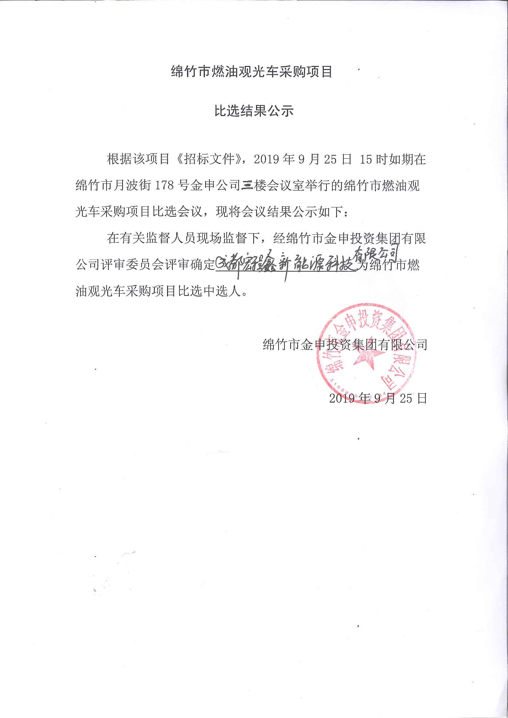 燃油觀(guān)光車(chē)采購項目比選結果公示