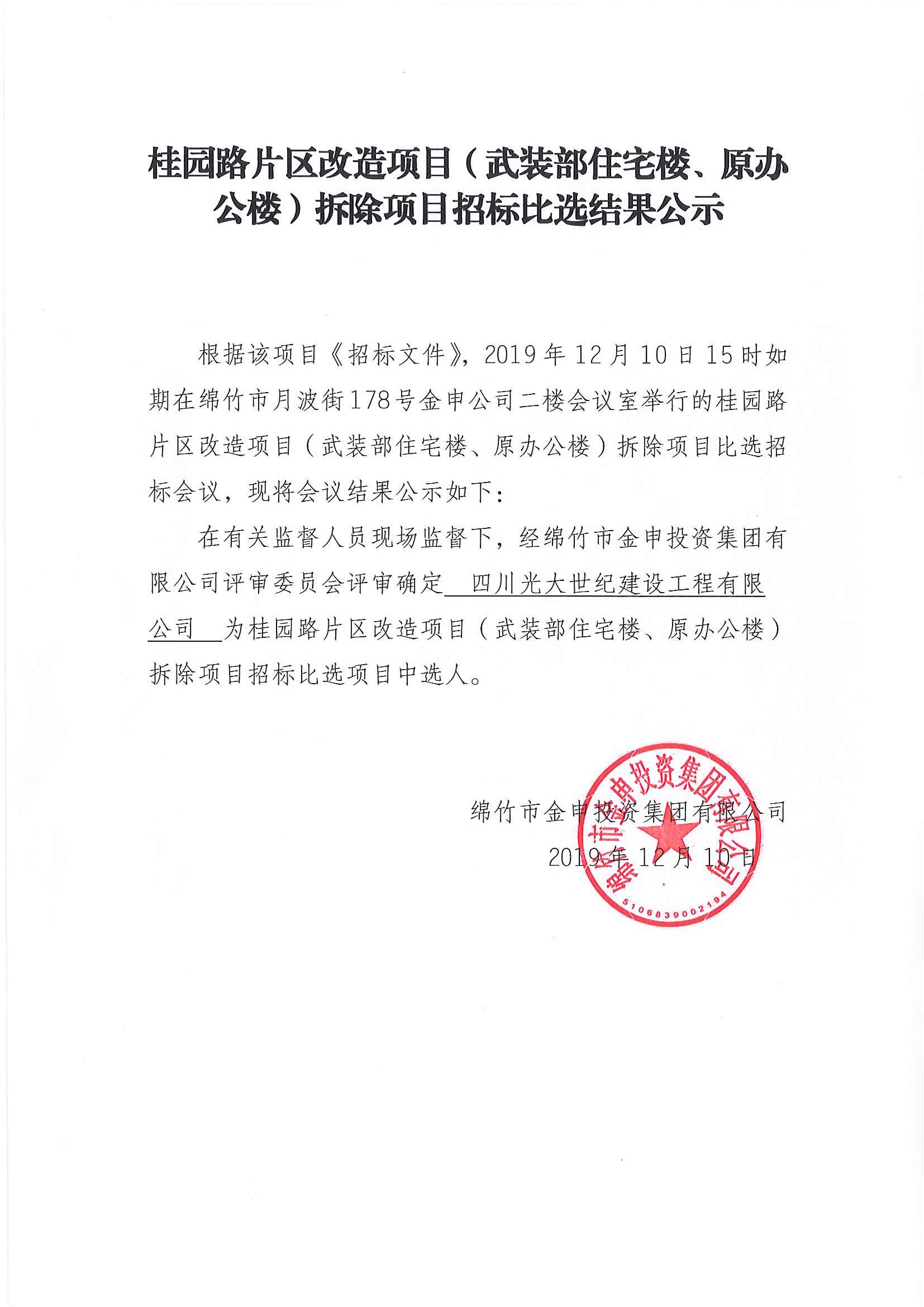 桂園路片區改造拆除項目招標比選結果公示