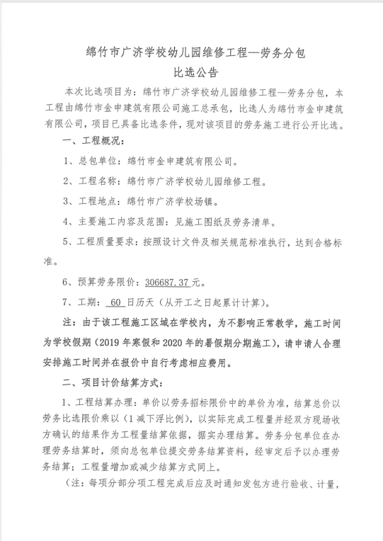 市廣濟幼兒園維修項目勞務(wù)分包比選公告