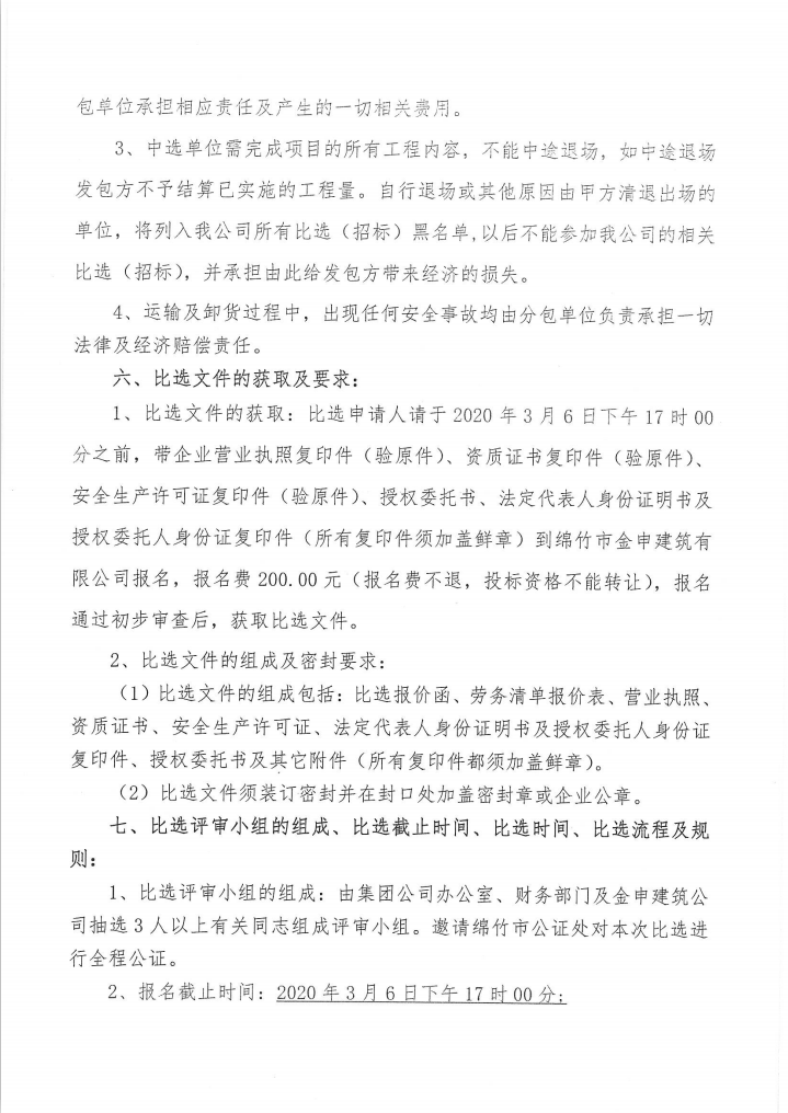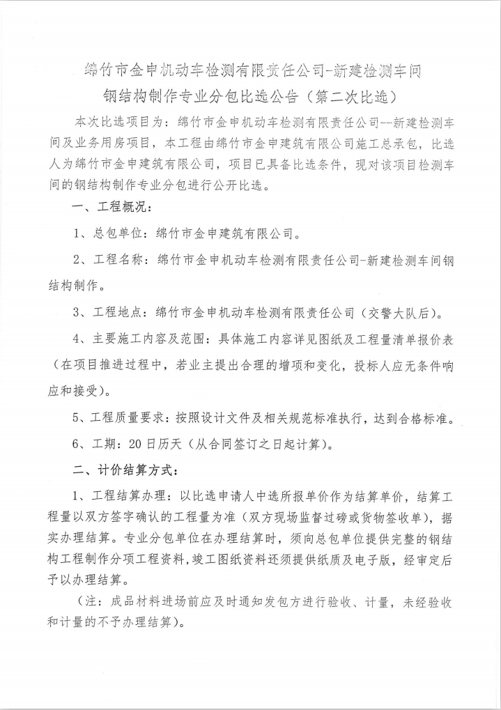 新建檢測車(chē)間鋼結構制作專(zhuān)業(yè)分包比選公告(第二次比選)