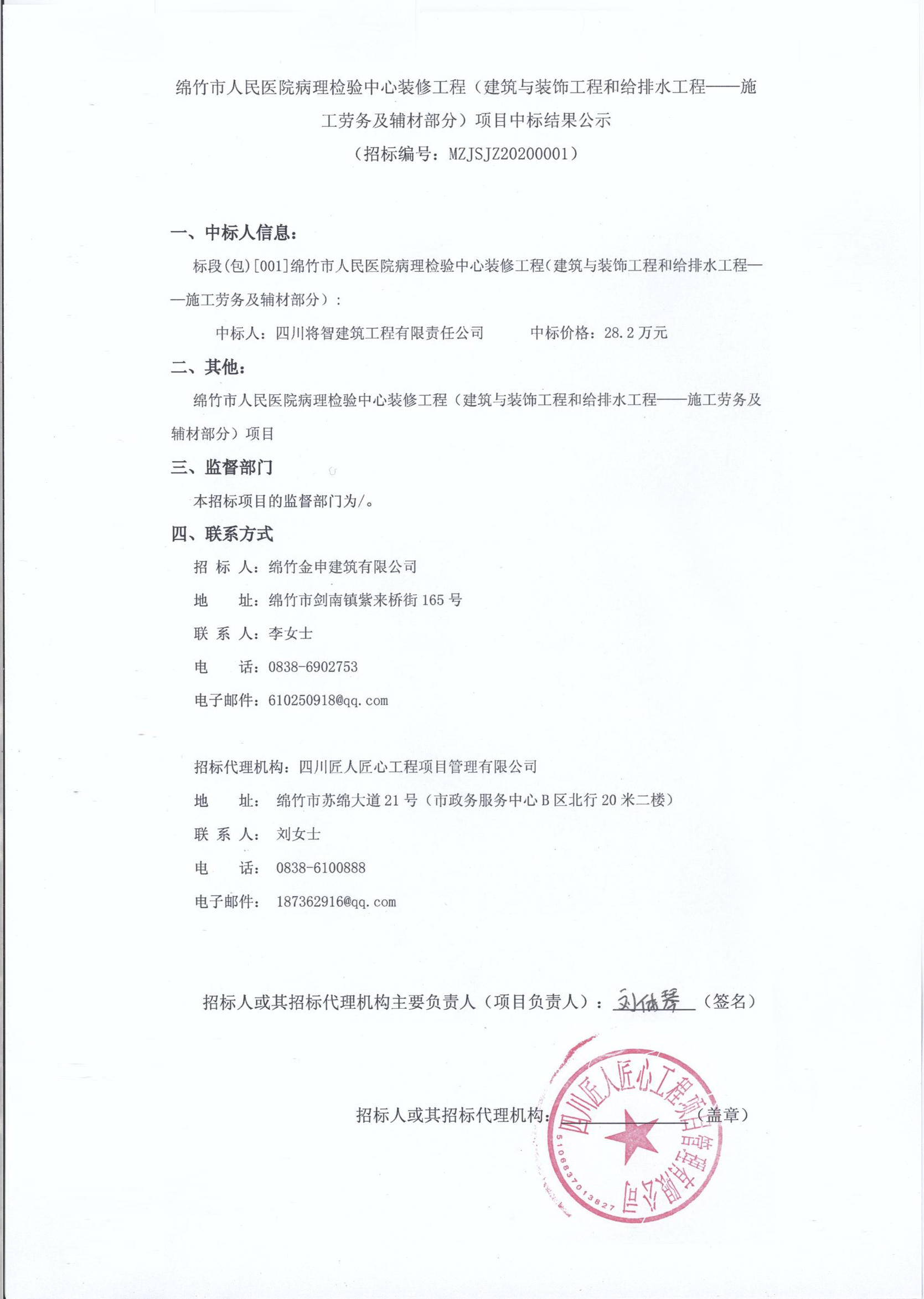 人民醫院病理檢驗中心(給排水工程)項目中標結果公示