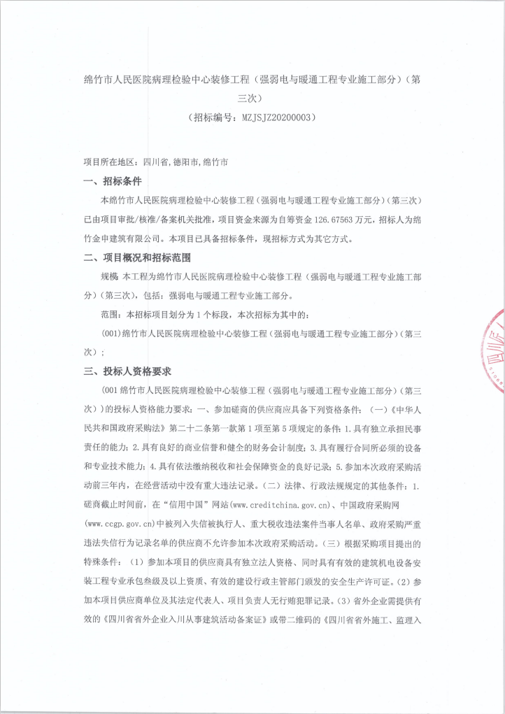 人民醫院病理檢驗中心裝修工程(強弱電工程)第三次招標公告
