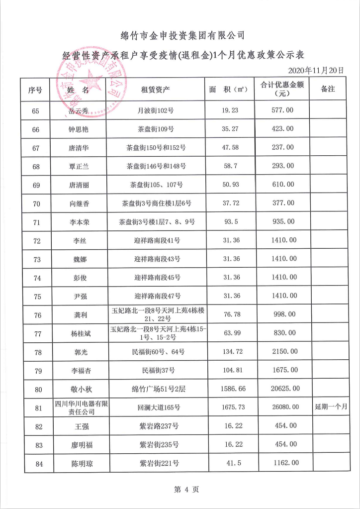經(jīng)營(yíng)性資產(chǎn)承租戶(hù)享受疫情(退租金)一個(gè)月優(yōu)惠政策公示