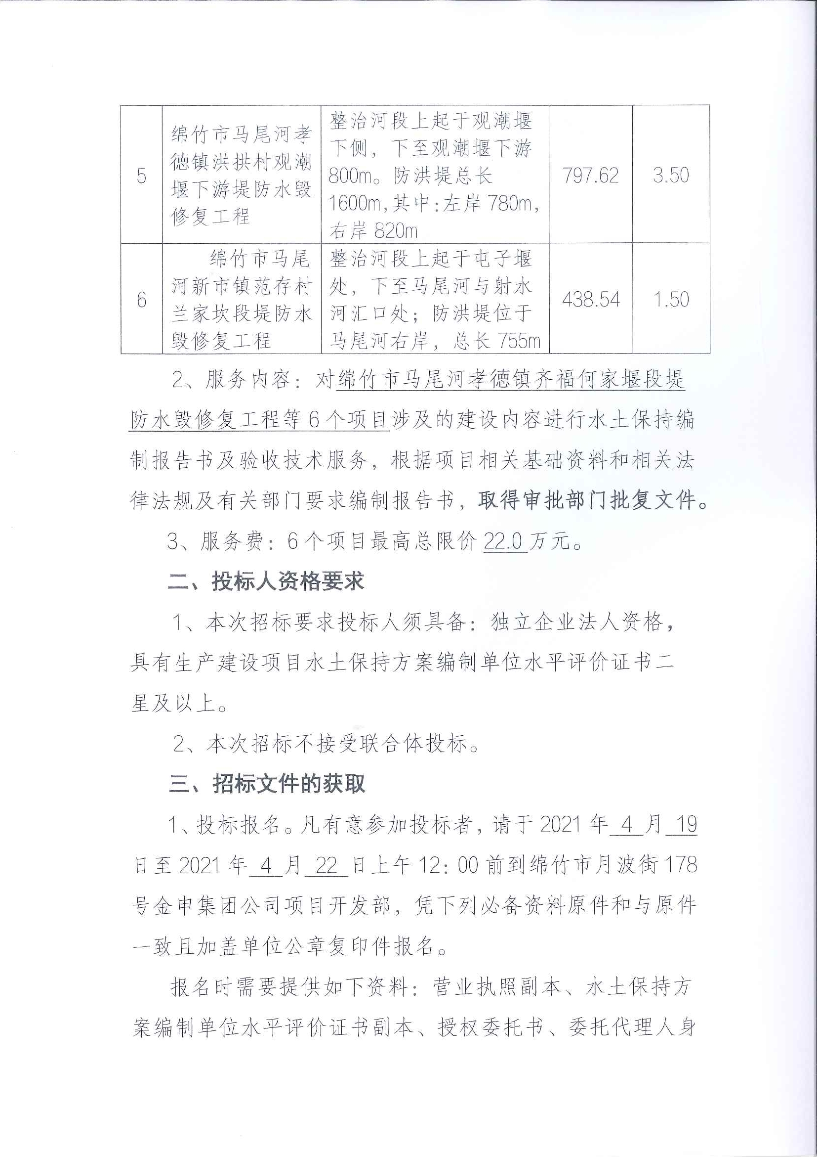 馬尾河何家堰段堤防水毀等6個(gè)項目水保編制服務(wù)招標公告