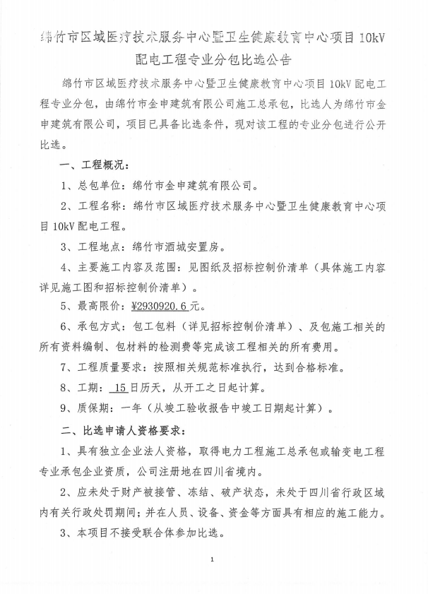市醫療技術(shù)服務(wù)暨健康教育中心項目配電工程分包比選公告
