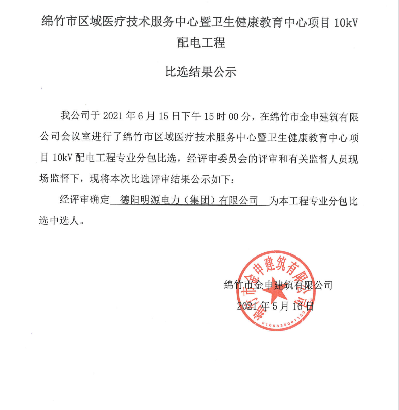 市醫療服務(wù)中心暨衛生健康教育中心配電工程比選結果公示