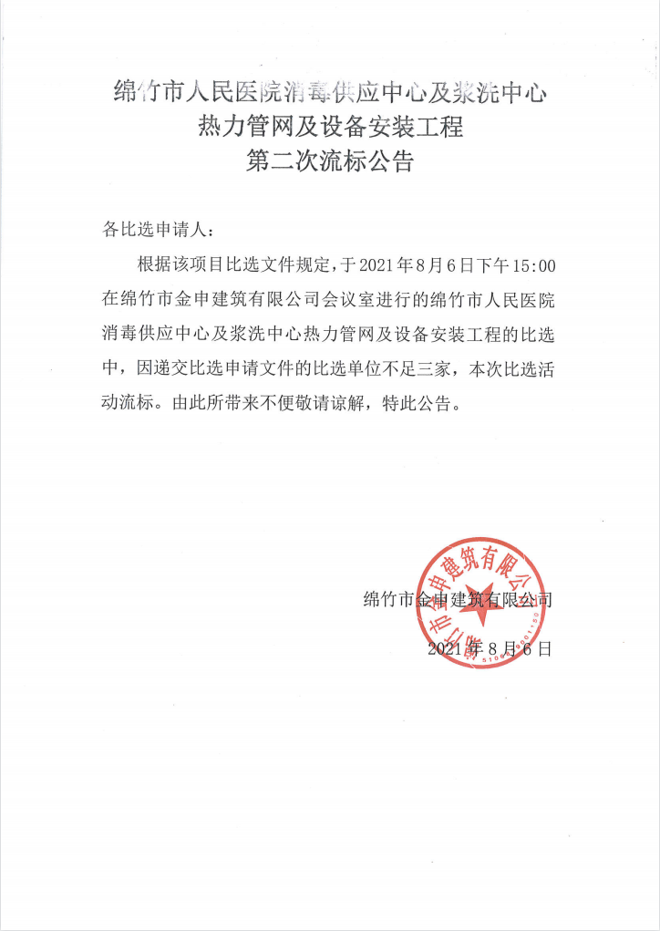 市醫院消供、漿洗中心熱力網(wǎng)管設備安裝工程二次流標公告