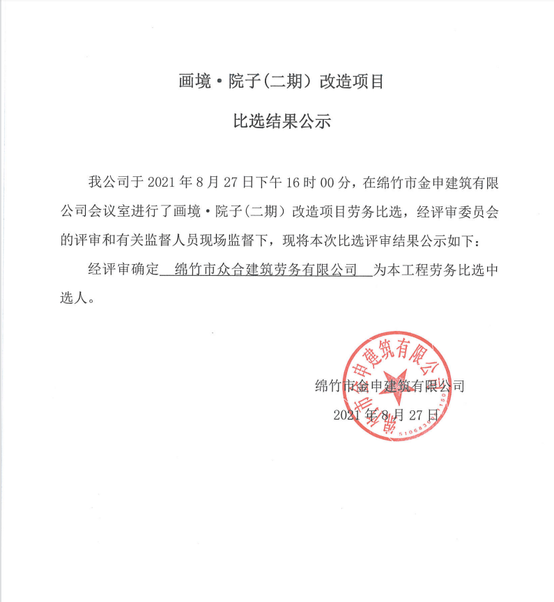 畫(huà)境·院子(二期)改造項目比選結果公示