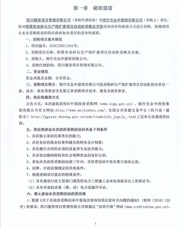 銘聚砂石生產(chǎn)線(xiàn)擴建項目啟動(dòng)柜采購及安裝招標公告