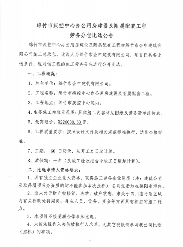 市疾控中心辦公用房建設及附屬配套工程第二次比選公告
