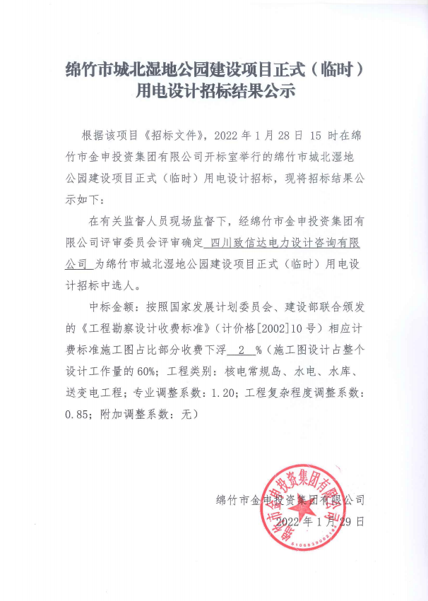 城北濕地公園項目正式(臨時(shí))用電設計招標結果公示