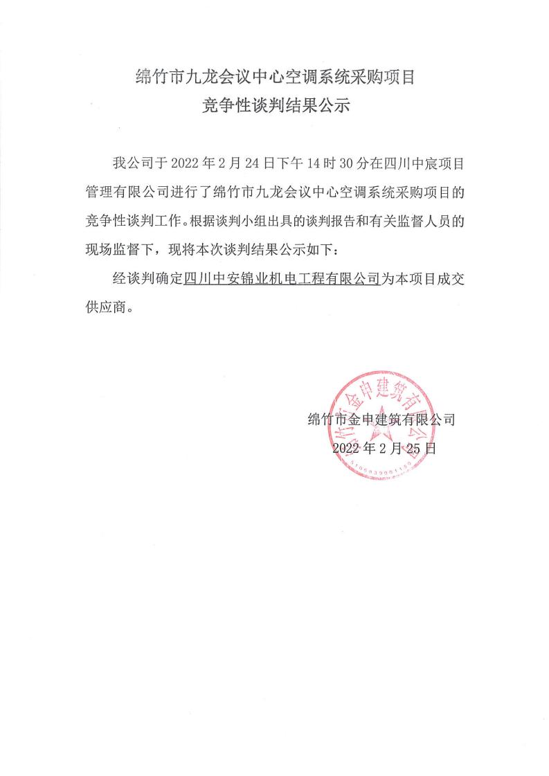 九龍會(huì )議中心空調系統采購項目競爭性談判結果公示