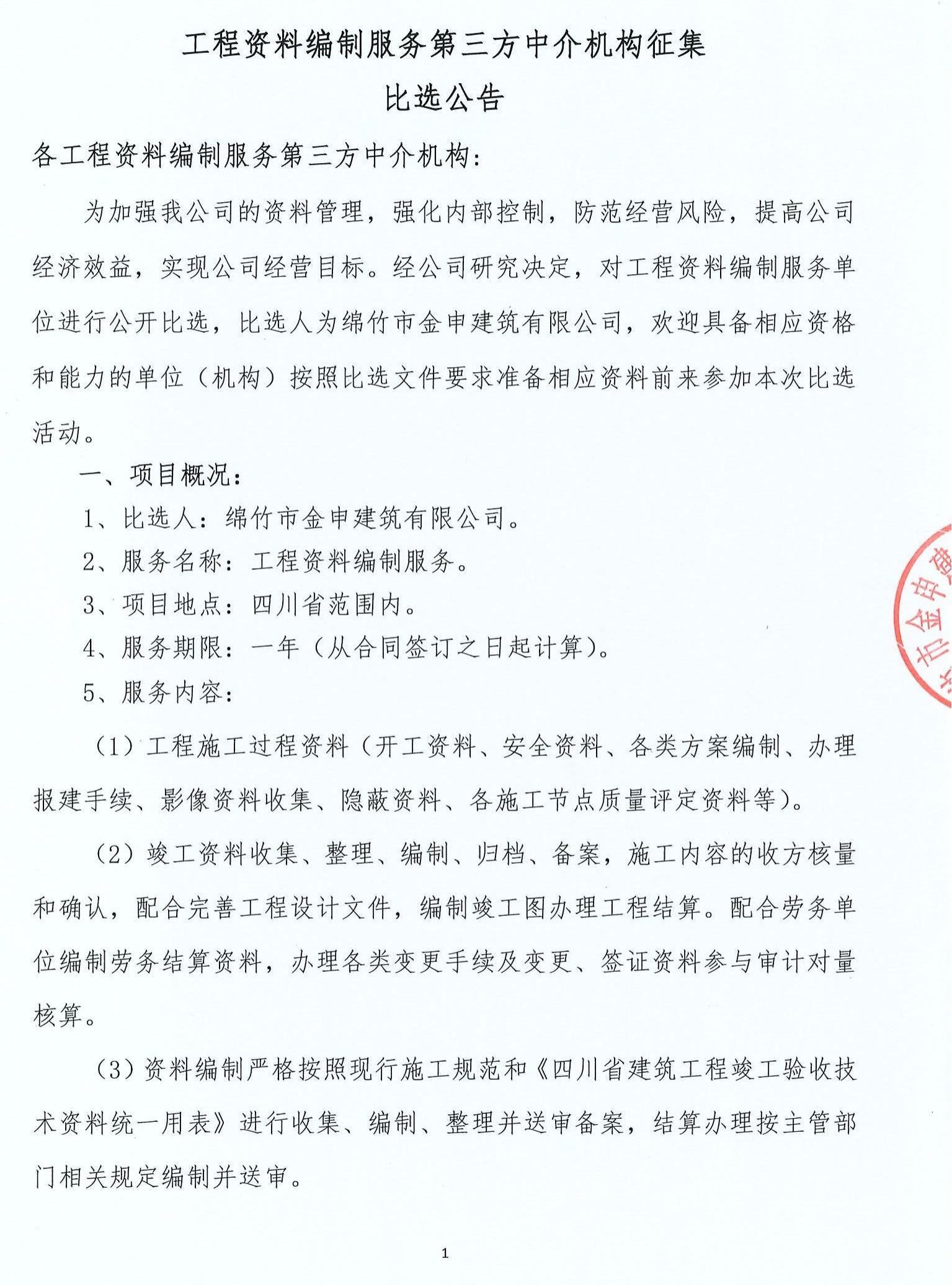工程資料編制服務(wù)第三方中介機構征集比選公告