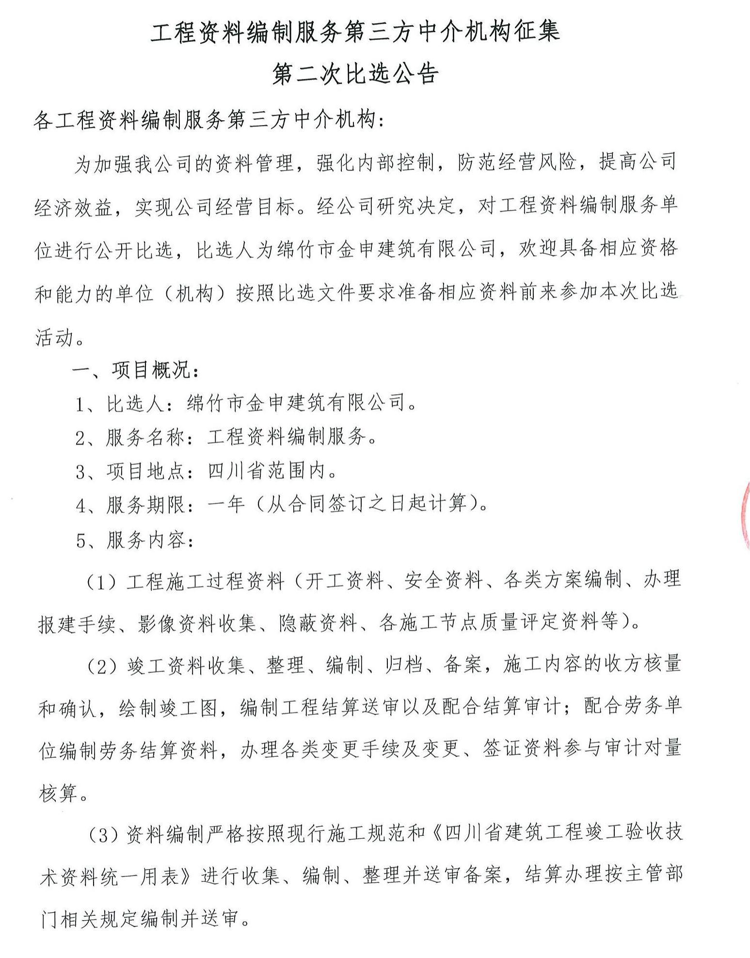 工程資料編制服務(wù)第三方中介機構征集(第二次)比選公告