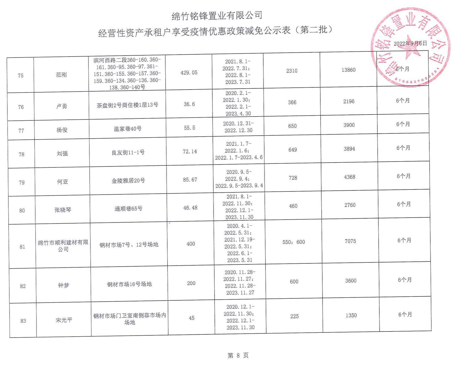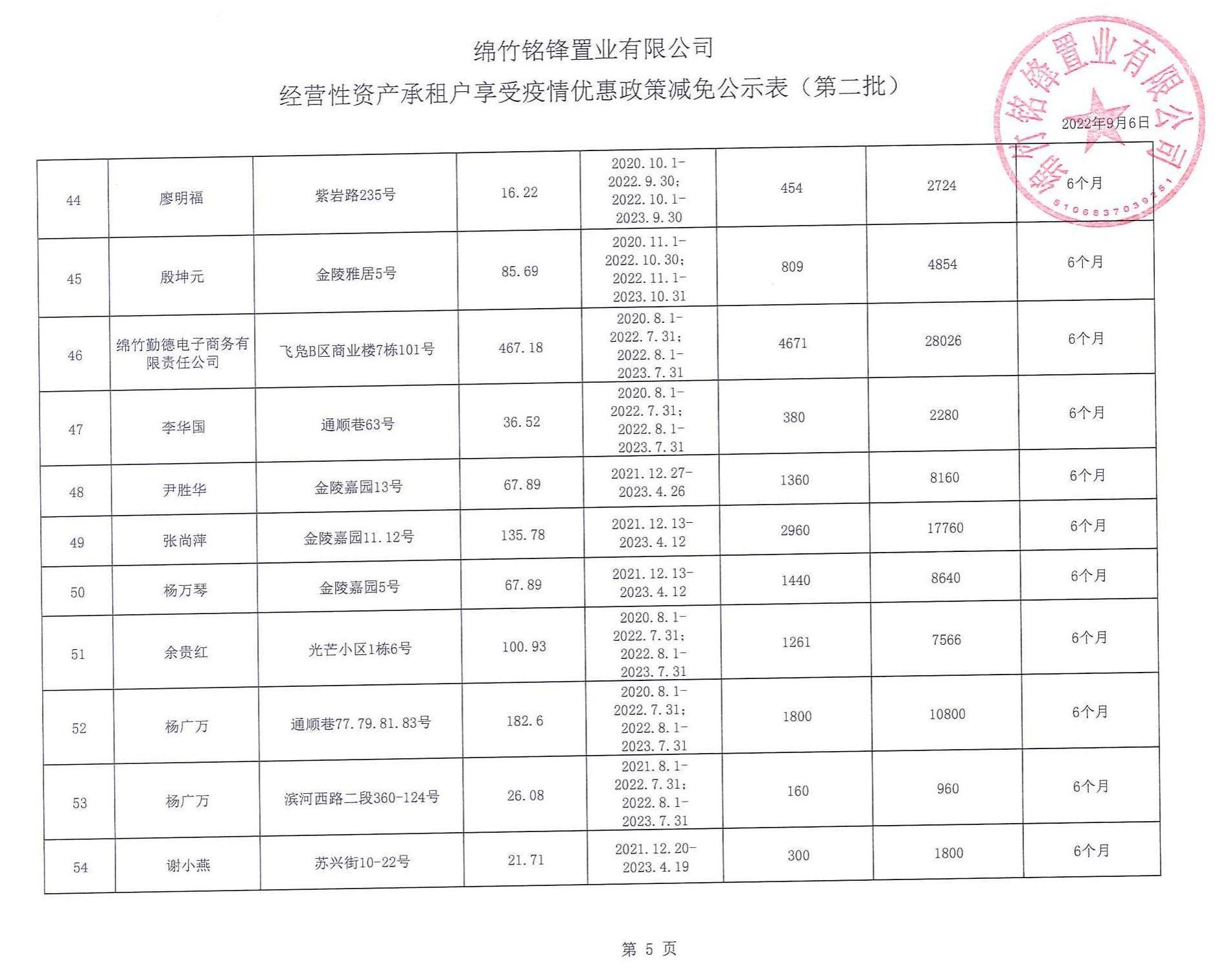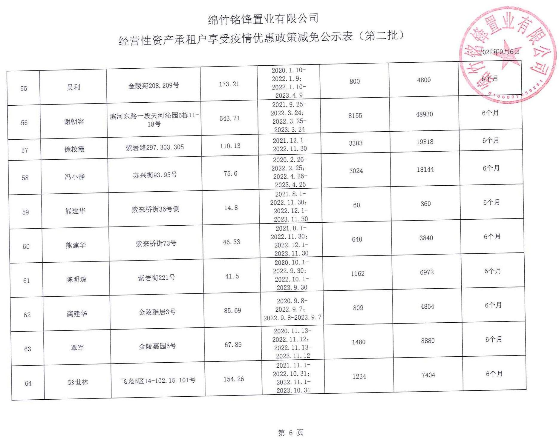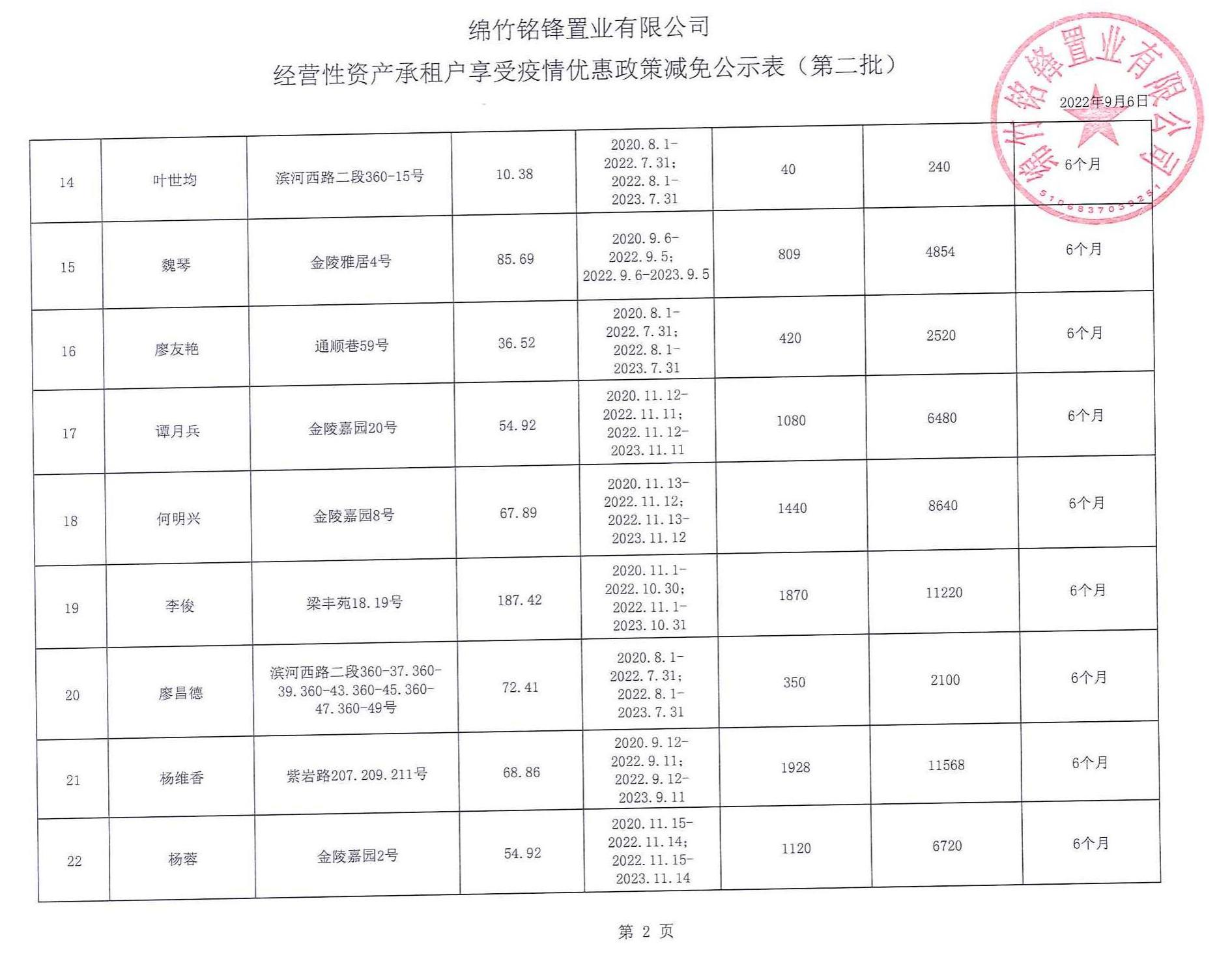 經(jīng)營(yíng)性資產(chǎn)承租戶(hù)享受疫情優(yōu)惠政策減免公示表(第二批)