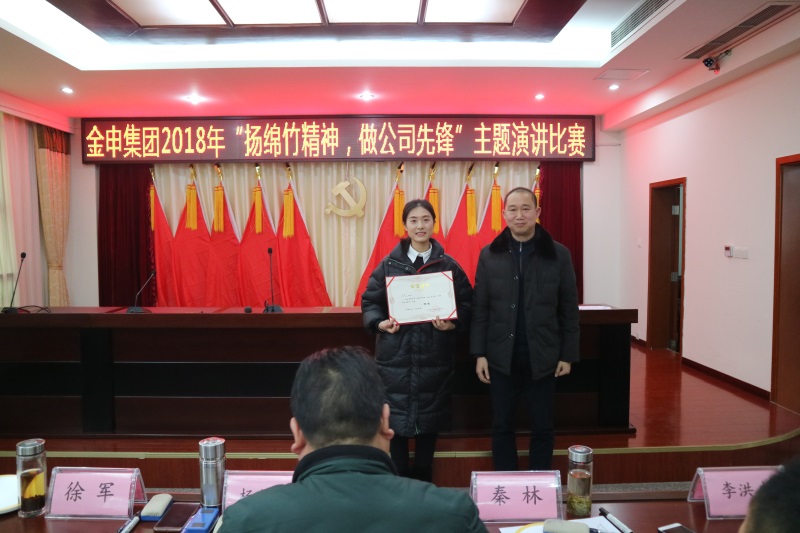 2018年2月9日,金申集團公司舉辦了“揚綿竹精神,做公司先鋒”主題演講比賽。集團公司黨委書(shū)記、董事長(cháng)徐軍,集團公司紀委書(shū)記劉斌、副總經(jīng)理楊茂平、財務(wù)總監秦林、各部室及子公司負責人和全體職工在現場(chǎng)觀(guān)看了演講比賽。本次演講比賽是集團公司深入貫徹學(xué)習黨的十九大精神的一項重要活動(dòng)。
