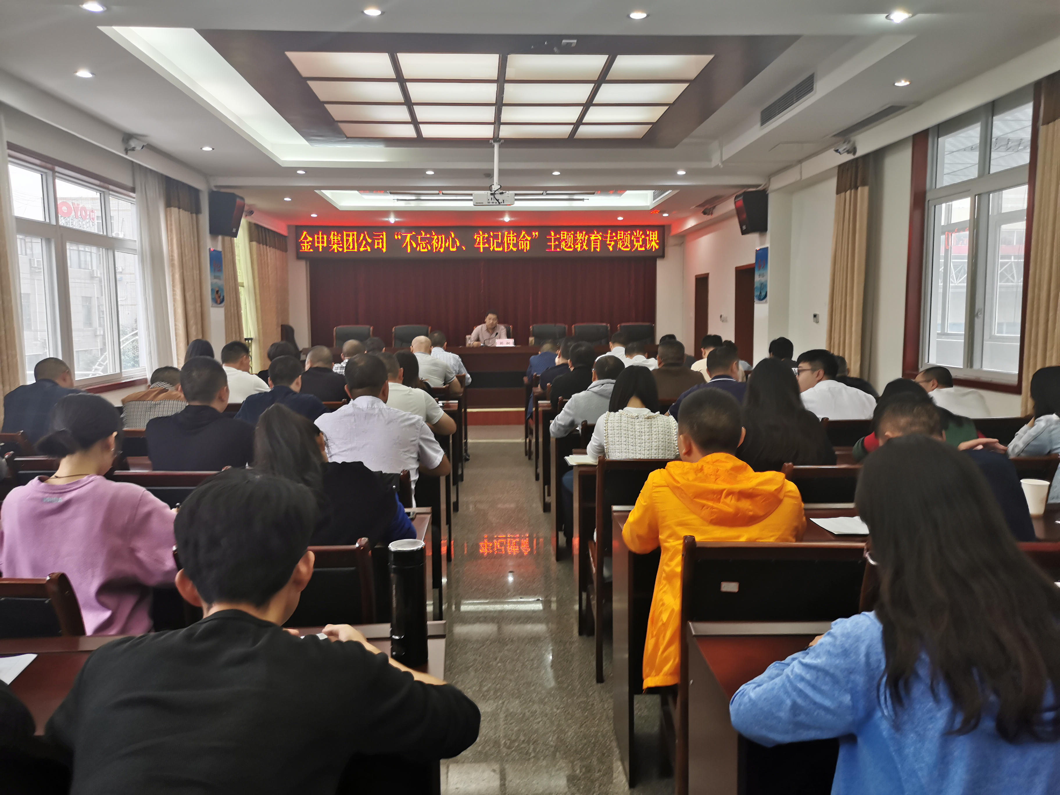 2019年10月12日,金申集團召開(kāi)“不忘初心、牢記使命”主題教育專(zhuān)題黨課,集團公司全體黨員、中干、發(fā)展對象、積極分子等50余人參加了本次黨課學(xué)習,市委主題教育第四巡回指導組成員列席。